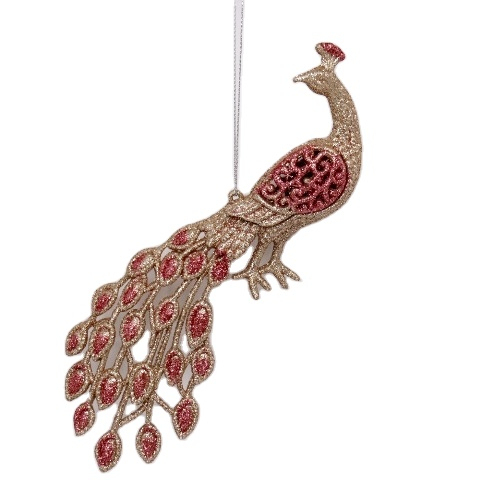 מלאכותי יפה פלסטיק טווס עם תכשיטי קליפ אדום תליית קישוטים לחג המולד חג המולד הקדוש זר קישוטים